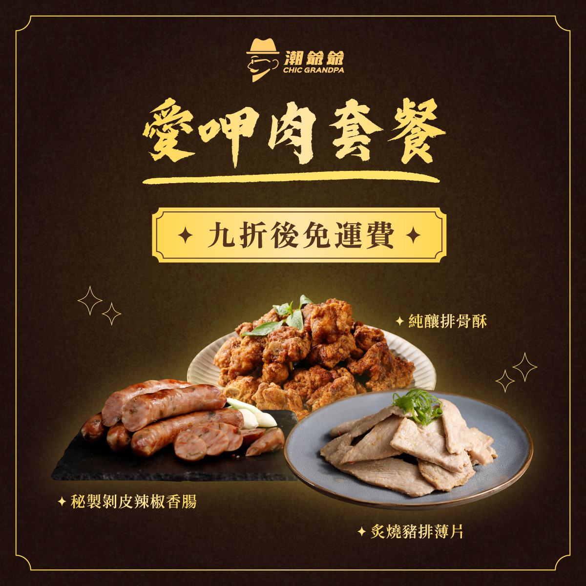 【優惠組合B套餐】秘製剝皮辣椒香腸x2+飛魚卵香腸x2+純釀排骨酥x2+炙燒豬排薄片x2